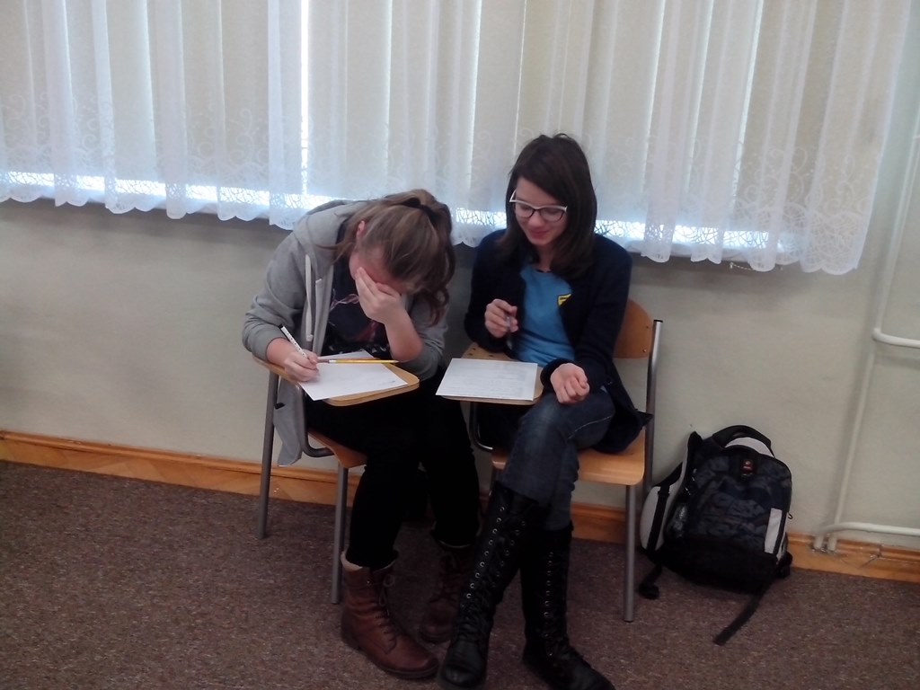 4 czerwca 2016 r. w naszej szkole odbył się Powiatowy Konkurs Matematyczny "Świat Brył". W konkursie wzięło udział 7 szkół powiatu kwidzyńskiego. Naszą szkołę reprezentowali uczniowie klas III: Agnieszka Michlewicz z klasy III c, Kinga Łompieś z klasy III c oraz Julian Uchacz z klasy III f. Konkurs składał się dwóch etapów. Pierwszy etap to część pisemna, w której uczniowie musieli wykazać się wiedzą matematyczną oraz sprawnością rachunkową. W tej części nasi uczniowie zajęli czołowe miejsca: