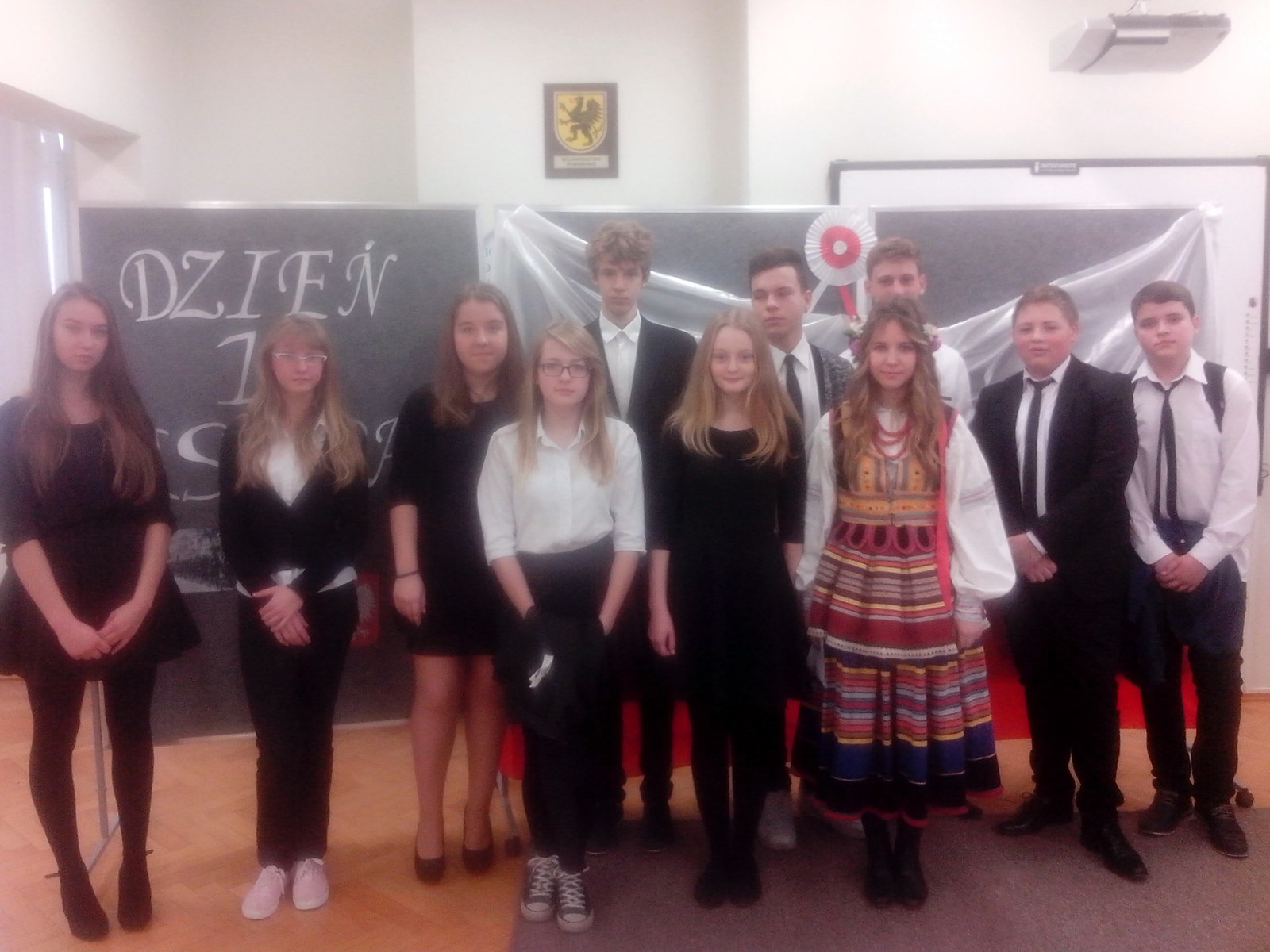 97 lat temu, po 123 latach niewoli, Polska powróciła na mapy świata. Na pamiątkę tego wydarzenia 11 listopada obchodzimy Święto Niepodległości. Z tej okazji 12 listopada uczniowie z klas III d, g, h, i, przygotowani pod kierunkiem p. Doroty Huk- Szymańskiej, p. Elżbiety Kanieckiej i p. Eligiusza Gełdona, zaprezentowali montaż słowno-muzyczny, który obejrzały trzyosobowe delegacje wszystkich klas.