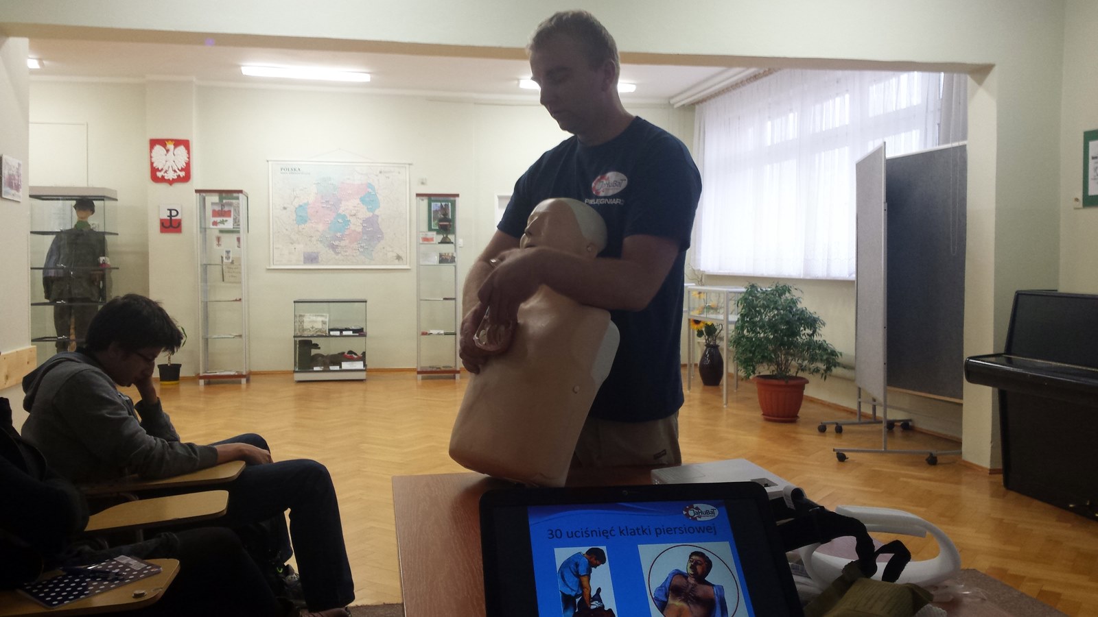 W dniu 05.11.2015r. uczniowie klasy 3b uczestniczyli w szkoleniu z zakresu udzielania pierwszej pomocy przedmedycznej. Zajęcia prowadził wykwalifikowany pielęgniarz, profesjonalnie przygotowany w tym zakresie.
