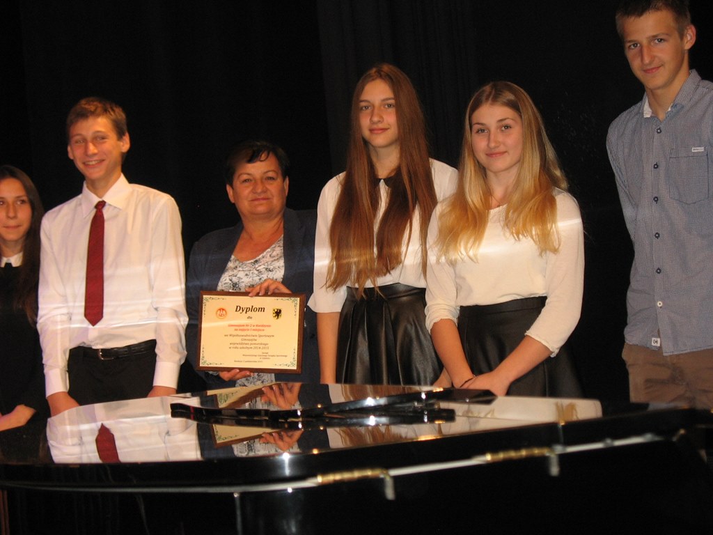 Dnia 2 października 2015 w kinoteatrze odbyła się inauguracja sportowego roku szkolnego a także podsumowanie ubiegłego roku sportowego. Nasza szkoła, jak w poprzednich latach, zajęła I miejsce zwyciężając we współzawodnictwie sportowym szkół w ramach Wojewódzkiej Gimnazjady Młodzieży Szkolnej. Za zwycięstwo szkoła otrzymała nagrodę pieniężną i tabliczkę pamiątkową. GRATULUJEMY!! |
