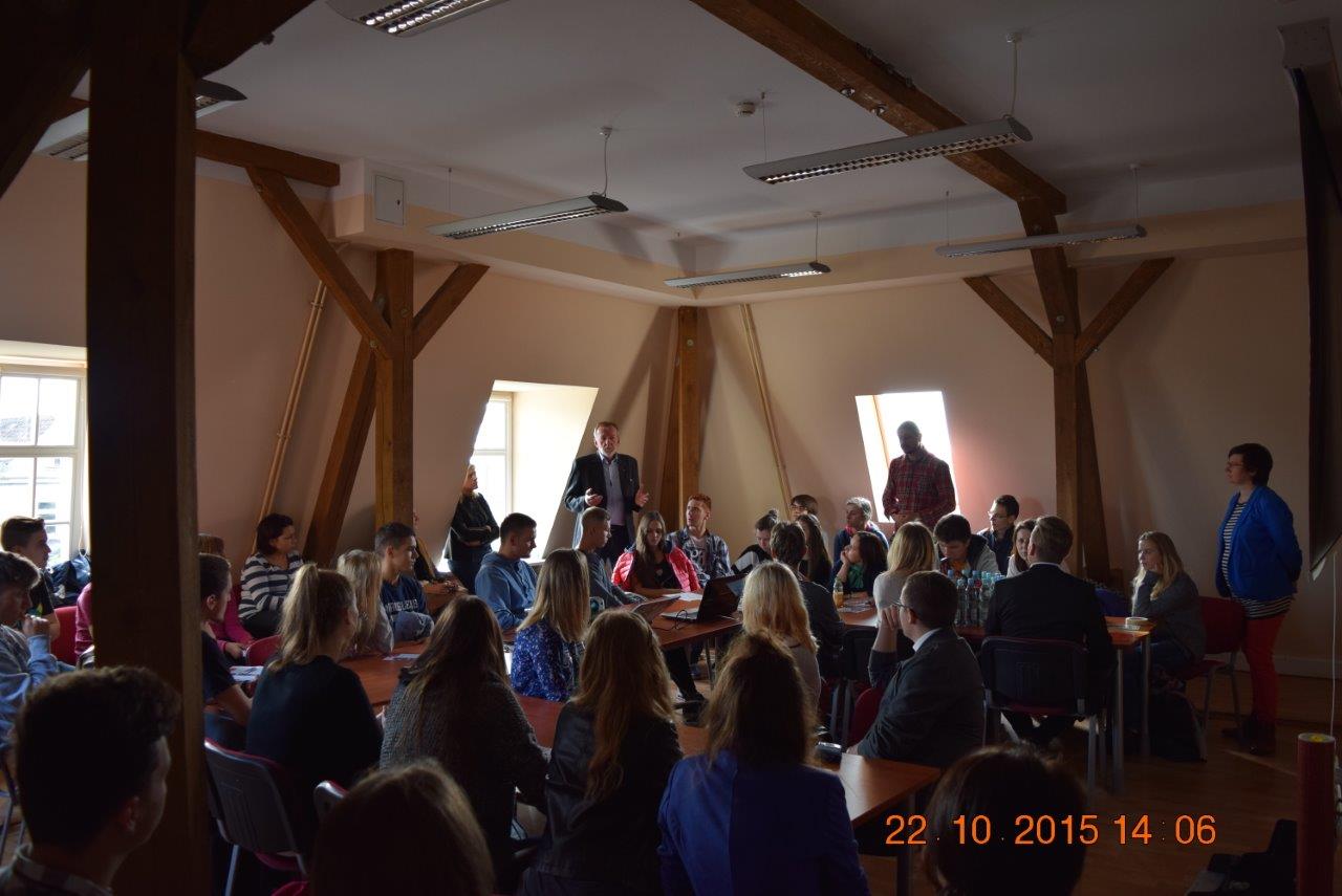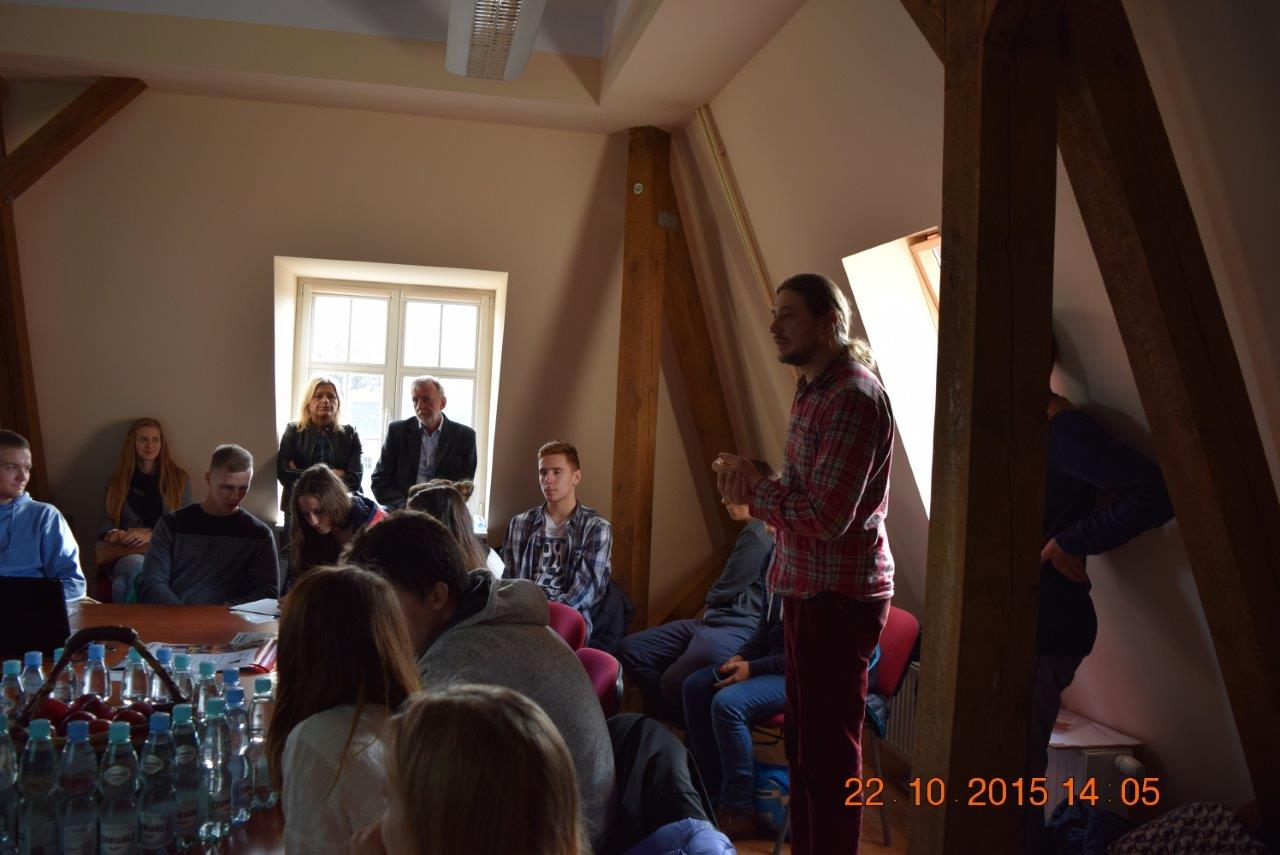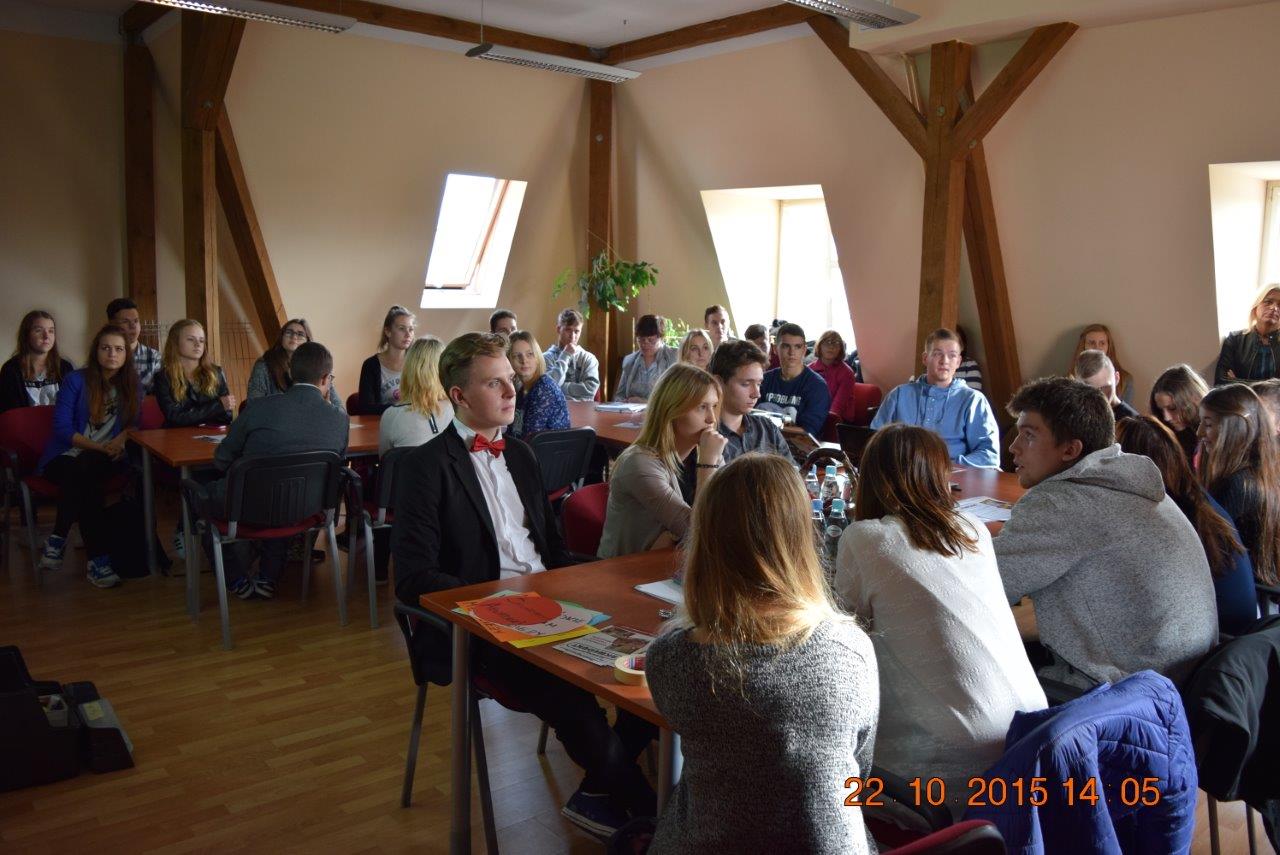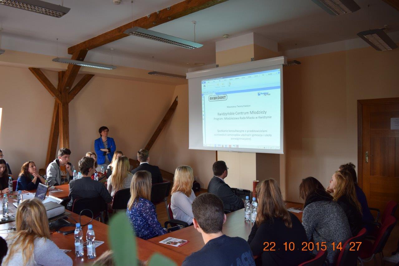Przedstawiciele Samorządu Uczniowskiego (Kinga Łompieś z kl. 3c, Magdalena Białek z kl. 3h i Filip Sitarz z kl.3f) wzięli udział w spotkaniu organizacyjnym mającym na celu zapoznanie młodzieży z inicjatywą stworzenia Młodzieżowej Rady Miasta w Kwidzynie, mającej na celu zainteresowanie młodzieży sprawami Kwidzyna i systematycznego zaangażowania ich w życie społeczności naszego miasta. |