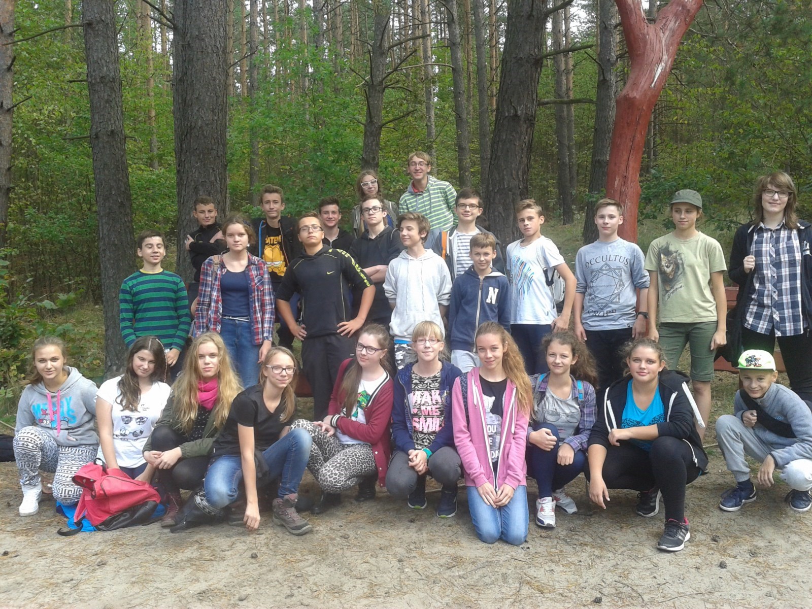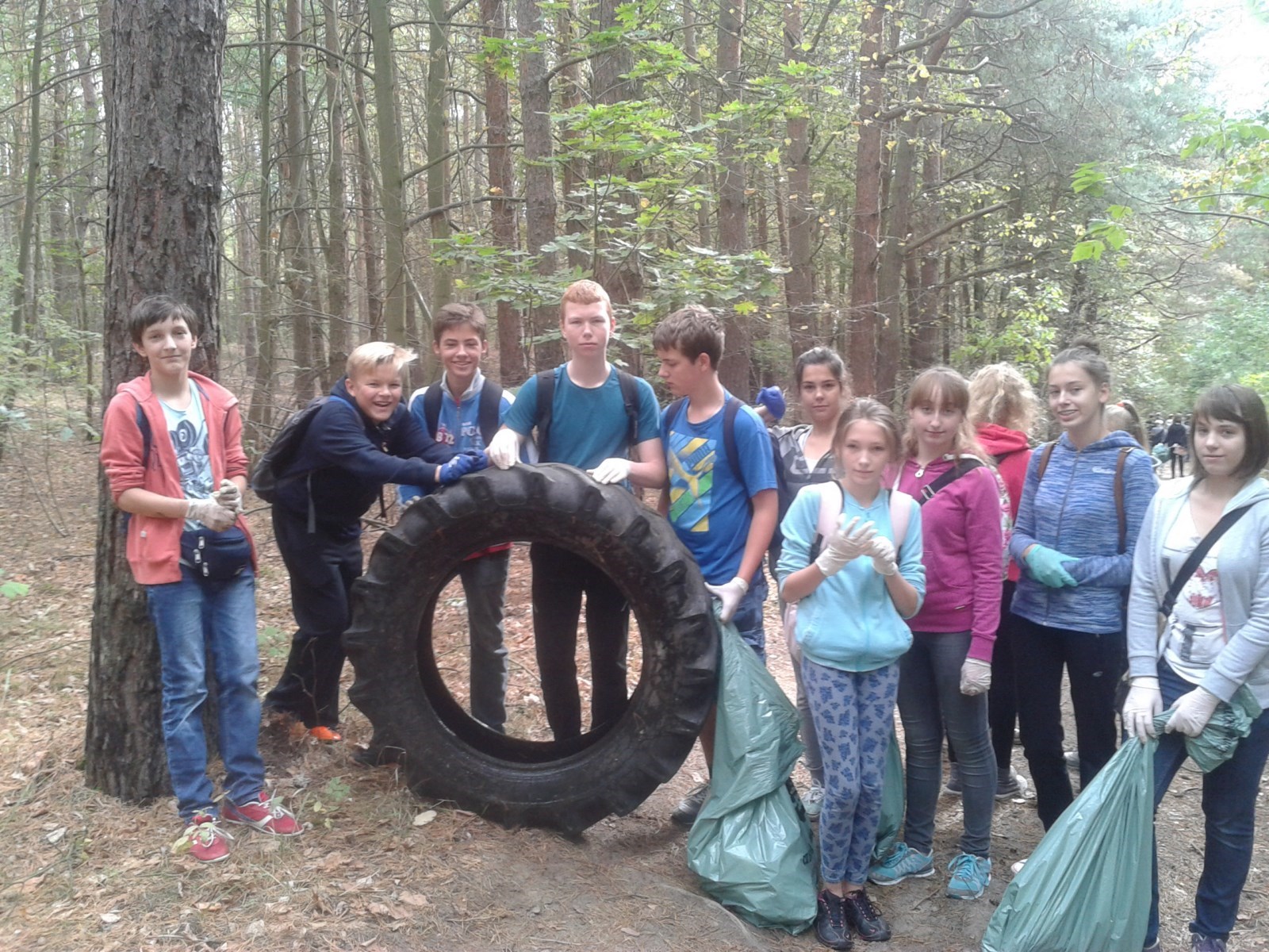 W piątek 18 września uczniowie naszego gimnazjum uczestniczyli w akcji "Sprzątanie Świata" współorganizowanej przez Nadleśnictwo Kwidzyn. O godzinie 9.30 wyruszyli z parkingu Kościoła Pod Wezwaniem Św. Alberta w stronę Kamionki. Od leśniczych otrzymaliśmy rękawiczki, worki oraz wskazówki jak i co zbierać. Chęci i zapału do pracy nie brakowało, tym bardziej, że pogoda była wspaniała. Z przykrością należy stwierdzić, że nie brakowało również śmieci, które trzeba było pozbierać... W podmiejskich lasach można było znaleźć praktycznie wszystko: od plastików, butelek, papieru i puszek po sprzęty domowe, opony, kafelki czy gruz. Najwięcej było śmieci z gospodarstw domowych i tych, zostawionych przez spacerowiczów i grzybiarzy. Uczniowie klas przyrodniczych sprzątając las – wykonywali dodatkowe zadania o tematyce przyrodniczej. Udało się nawet zebrać wspaniałe okazy grzybów. Akcję zakończyło wspólne ognisko, przygotowane przez Nadleśnictwo. Młodzież dzieliła się wrażeniami i odpoczywała po długiej wędrówce. Około godziny 14.00 z poczuciem dobrze spełnionego obowiązku uczniowie wrócili na miejsce zbiórki i rozeszli się do swoich domów. W akcji wzięli udział uczniowie klas przyrodniczych I c i II b oraz klasa II d. Opiekunami były: p. Izabella Fifielska, p. Małgorzata Radzikowska i p. Agnieszka Białecka oraz leśniczy – p. J. Rozmus i p. A. Zboiński. Przypominamy, że dbać o czystość otoczenia i środowisko trzeba wszędzie, również w naszym Gimnazjum! Na korytarzach rozstawione są kolorowe pojemniki do segregacji odpadów (na plastik, szkło, metal i papier), zbieramy również zużyte baterie a w klasach – znajdują się kartony na makulaturę. Więc: NIE WYRZUCAJ - JAK LECI - WSZYSTKIEGO DO ŚMIECI !