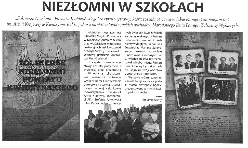 27 września 2015 roku obchodziliśmy uroczystość 76. rocznicy powstania Polskiego Państwa Podziemnego oraz 14. rocznicę nadania imienia Armii Krajowej naszej szkole. Z tej okazji 28 września w naszym gimnazjum miała miejsce uroczystość, na którą przybyli znamienici goście, m.in. Zastępca Burmistrza ds. Społecznych - pan Roman Bera, przedstawiciele Rady Rodziców Gimnazjum nr 2 oraz goście honorowi- przedstawiciele Światowego Związku Żołnierzy AK, wśród których byli pani Stefania Pawłowska i pan Jan Paśko. Po odśpiewaniu hymnu, głos zabrała pani Małgorzata Wróblewska- dyrektor szkoły – przemawiała do wszystkich obecnych w hali, ale szczególne słowa uznania i zapewnienia skierowała do Żołnierzy Armii Krajowej, następnie głos zabierali zaproszeni goście. Pan Jan Paśko wrócił wspomnieniami do lat wojny i tym samym wywołał ogromne wzruszenie wśród całej społeczności zgromadzonej w hali. Po przemówieniach, pani dyrektor, w obecności wszystkich gości, przyjęła uroczyste ślubowanie uczniów klas pierwszych. Kolejnym punktem uroczystości był niezwykle wzruszający montaż słowno- muzyczny pt. „Gdzie dziewczęta z tamtych lat…” w wykonaniu młodzieży przygotowanej pod kierunkiem pani Renaty Bielawskiej- Kapicy, pani Sylwii Wardaszki i pani Aliny Tyszkowskiej, nad oprawą muzyczną natomiast czuwał pan Eligiusz Gełdon. Po montażu zaproszeni goście udali się do Izby Pamięci, a młodzież szkolna uczestniczyła w lekcjach wychowawczych poświęconych Armii Krajowej.