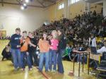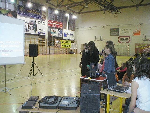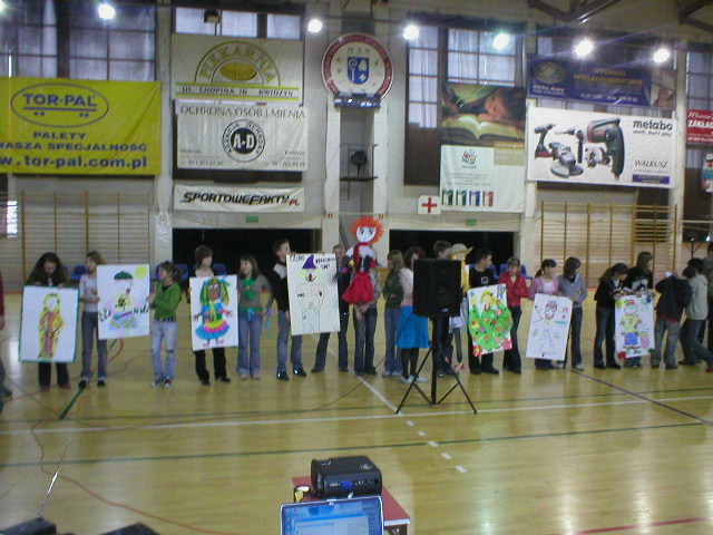 21 marca – początek wiosny – to w naszej szkole już tradycyjnie dzień bez zajęć lekcyjnych. O godz. 9.00 wszyscy uczniowie i nauczyciele spotkali się w hali sportowej na prezentacji wyników akcji „Kolega na medal” i uroczystym wręczeniu pamiątkowych dyplomów oraz znaczków dla najbardziej lubianych gimnazjalistów. Po części oficjalnej zaprezentował się zespół wokalny „Maxyma” pod kierunkiem p. E. Gełdona, a następnie z koncertami muzycznymi wystąpili: Paweł Wystup i grupa w składzie: Piotr Chomicz, Sławek Lewandowski i Wojtek Hauer. Od godz. 10.30 do 12.00 uczniowie wraz z wychowawcami przygotowywali w swoich klasach projekt „Marzanny”. Każda klasa miała do dyspozycji arkusz brystolu, kolorowe krepy i bibuły, kredki, farby, flamastry. Młodzież wykazała się ogromną inwencją twórczą: powstały kukły w klasycznym, tradycyjnym stylu a także bardzo nowoczesne. Wszystkie „Marzanny” zostały zaprezentowane społeczności szkolnej w hali sportowej o godz. 12.15. W nagrodę za tak oryginalną pracę uczniowie otrzymali „słodkie” nagrody od dyrekcji szkoły. Uwieńczeniem pierwszego dnia wiosny był festiwal karaoke. Gimnazjaliści przy dopingu zgromadzonej publiczności śpiewali znane utwory muzyki rozrywkowej. I tak w muzycznym nastroju zakończyliśmy powitanie wiosny. |