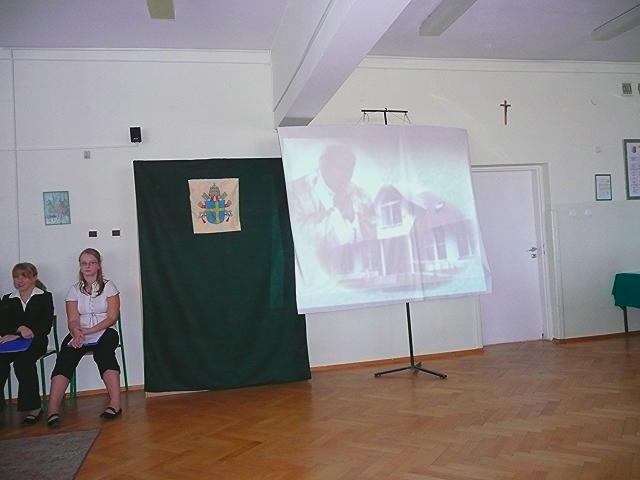 16 października 2008 r. (w rocznicę wyboru Karola Wojtyły na PAPIEŻA) obchodziliśmy VIII Dzień Papieski. Z tej okazji uczniowie klasy II „e” pod kierunkiem p. Ewy Zarębskiej i p. Anny Gnutek przygotowali montaż słowno-muzyczny, na który zostały zaproszone następujące klasy: I a, c, d, f, g, h, i, II b, d, e, f, i, j, III a, d, e, f. Aby umożliwić uczestnictwo w montażu jak największej grupie uczniów, klasa II „e” występowała czterokrotnie już w dniu 13 października 2008 r.