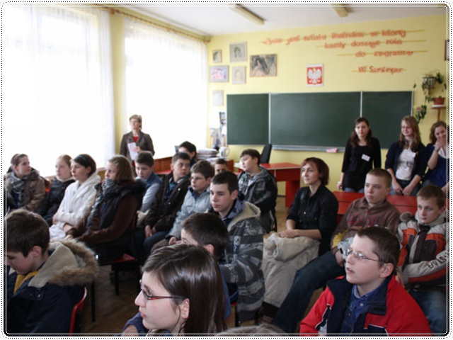Dnia 20 lutego 2009 r. 45 uczniów z klas trzecich naszego gimnazjum wyjechało na wycieczkę do Warszawy. Uczniowie w czasie wizyty w Sejmie RP przyglądali się obradom. Następnie odbyło się spotkanie i rozmowa z pracownikiem Wszechnicy Sejmowej. Młodzież zapoznała się z historią i funkcjonowaniem Sejmu RP. Po wizycie w Sejmie udaliśmy się do Pałacu Kultury w celu obejrzenia zbiorów Muzeum Techniki. Pobyt w Warszawie zakończyliśmy zwiedzaniem Starówki.