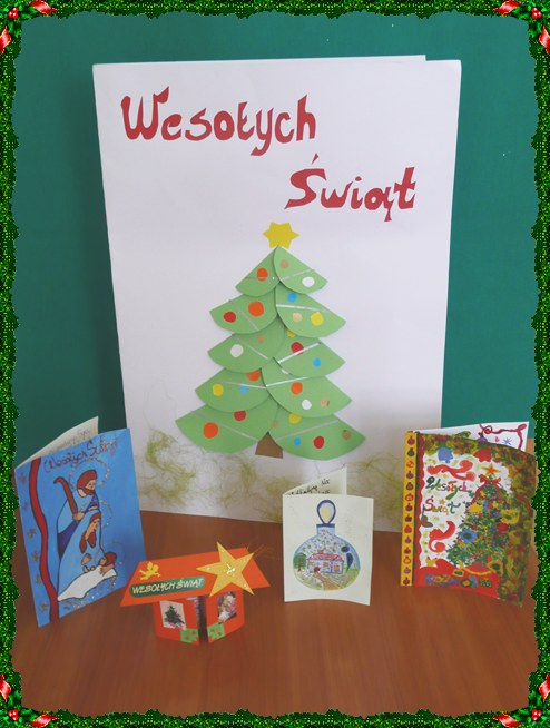 Grudzień to miesiąc oczekiwania świąt Bożego Narodzenia. W tym czasie przygotowujemy liczne ozdoby choinkowe, dekoracje mieszkań, wysyłamy karty z życzeniami do przyjaciół. W szkole ogłoszone zostały trzy konkursy: na szopkę betlejemską (p. E. Zarębska), świąteczny stroik (p. S. Wardaszka i R. Kapica) i okolicznościową kartę (p. J. Lewandowska).