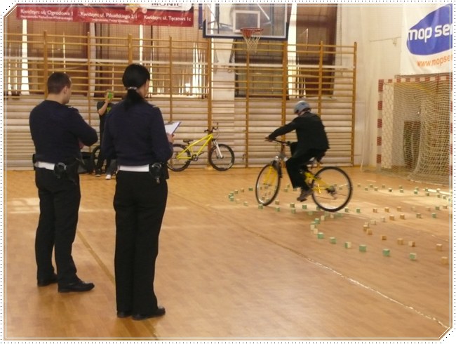 Zadaniem drużyn było: rozwiązanie testu z zasad i przepisów ruchu drogowego oraz wykonania zadań praktycznych, tj. jazdy rowerem po torze przeszkód oraz z zakresu udzielania pierwszej pomocy przedmedycznej, przez jednego uczestnika z każdej drużyny. Do etapu powiatowego zakwalifikowała się drużyna z Gimnazjum nr 2 w Kwidzynie.
