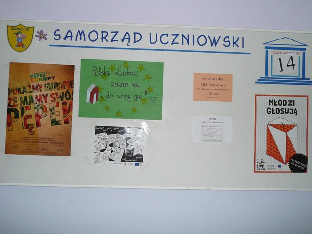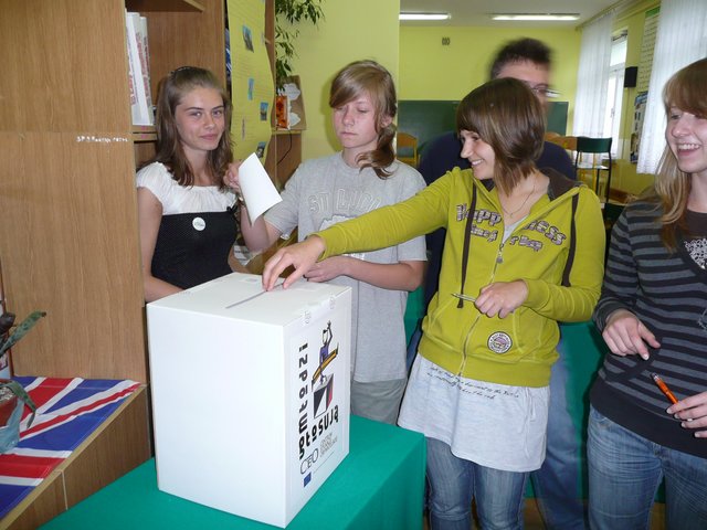 Młodzież naszego gimnazjum wzięła udział w projekcie CEO "Młodzi Głosują". Na lekcjach WOS-u uczniowie zapoznawali się z zasadami wyborów demokratycznych oraz zadaniami Parlamentu Europejskiego. Chętni uczniowie uczestniczyli w projekcie polegającym na wykonaniu plakatu zachęcającego obywateli do udziału w wyborach. Dnia 1 VI 2009 r. w szkole odbyły się Młodzieżowe Prawybory, w których wzięły udział wszystkie klasy. Nad przebiegiem wyborów czuwała p. K. Janicka oraz Młodzieżowa Komisja Wyborcza.